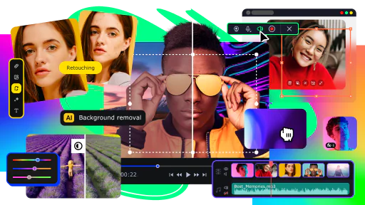 Paquete de vídeos Movavi 2024 Es un programa para PC con funciones útiles que le permite crear películas o presentaciones de diapositivas de forma profesional. Puede crear videos y grabar DVD con soporte para más de 181 funciones multimedia y formatos de video. También es posible digitalizar el vídeo en formato analógico. Gracias a los efectos de vídeo avanzados, puedes agregar funciones como cámara lenta y efectos visuales. Diseñe vídeos creativos de forma profesional con Movavi Video Suite 2024.