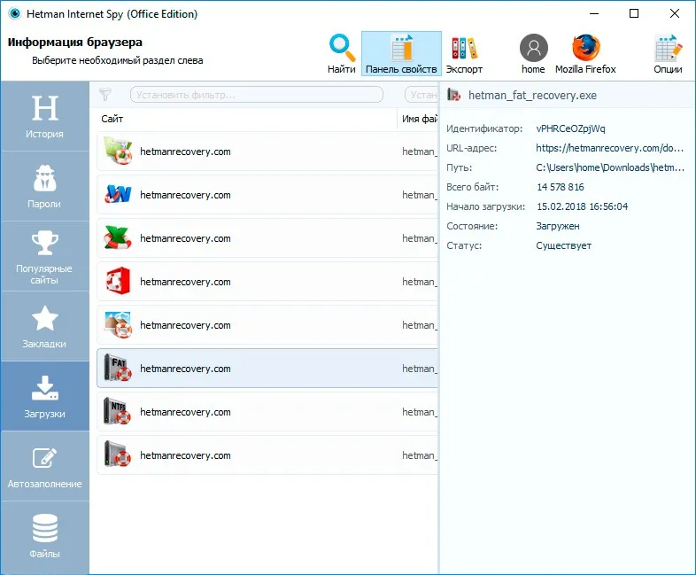 Usted está aquí: Descargar el programa completo Descargar programas completos – Descargar juegos / Descargar varios programas generales, programas de recuperación de datos y archivos / Descargar Hetman Internet Spy – Completo v4.1