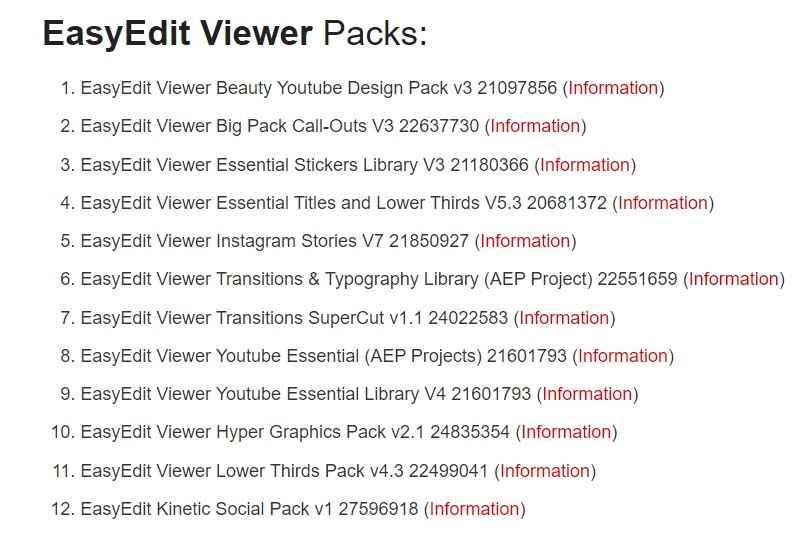 Paquetes de visor EasyEdit, Adobe after effect gráficos y efectos especiales archivo serie transiciónstan youtube video transición y efectos de video