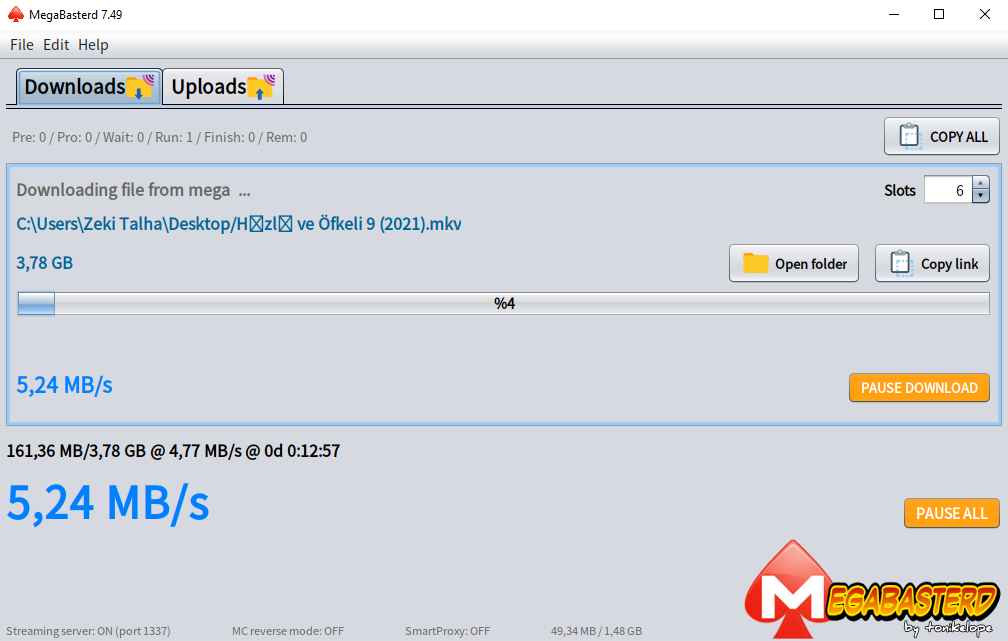 Megabasterd, Con el nuevo método, mega. NZ gratis sin problema de cuotas, descarga Zeki Talha, la narración de nuestro amigo