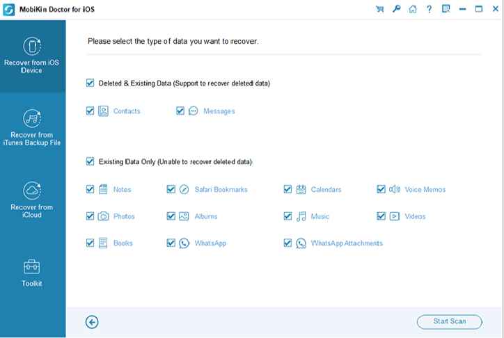 MobiKin Doctor para iOS, Haga que su negocio sea más seguro realizando una copia de seguridad completa y recuperando sus datos perdidos o eliminados del dispositivo con soporte completo. Es compatible con dispositivos como iPhone, iPad y iPod touch y ofrece una solución definitiva a su problema de recuperación de datos. Puede restaurar sus datos de manera flexible y beneficiarse de la función de modo de recuperación múltiple. Todo lo que tiene que hacer es escanear sus dispositivos en busca de datos perdidos y detectará y restaurará sus datos en poco tiempo. Es uno de los programas que es muy simple de usar y le brindará resultados completos.
