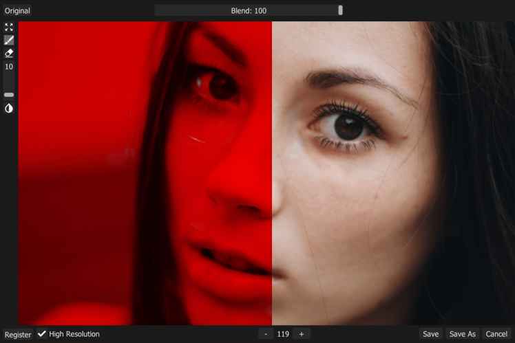 Harás los mejores retoques para unos ojos más bonitos y eliminarás las rojeces en los ojos. Cuando retoques, preserva la naturalidad de tus ojos y agrega diferencia y belleza a tus fotos agregando los filtros y colores que desees. programa