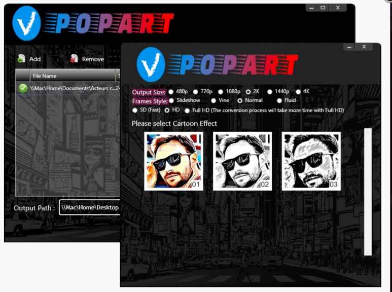 vpopart, Tiene tecnología de video avanzada y te ayuda a reflejar el diseño que creaste en tu mente directamente en la pantalla. Crea tus vídeos como desees sin mucho esfuerzo y conviértelos fácilmente al formato pop art. Compatible con varios formatos y convierte sin esfuerzo con un solo clic sin ningún problema. Puede exportar en resolución 4K o superior y hacer todo esto sin conexión a Internet.