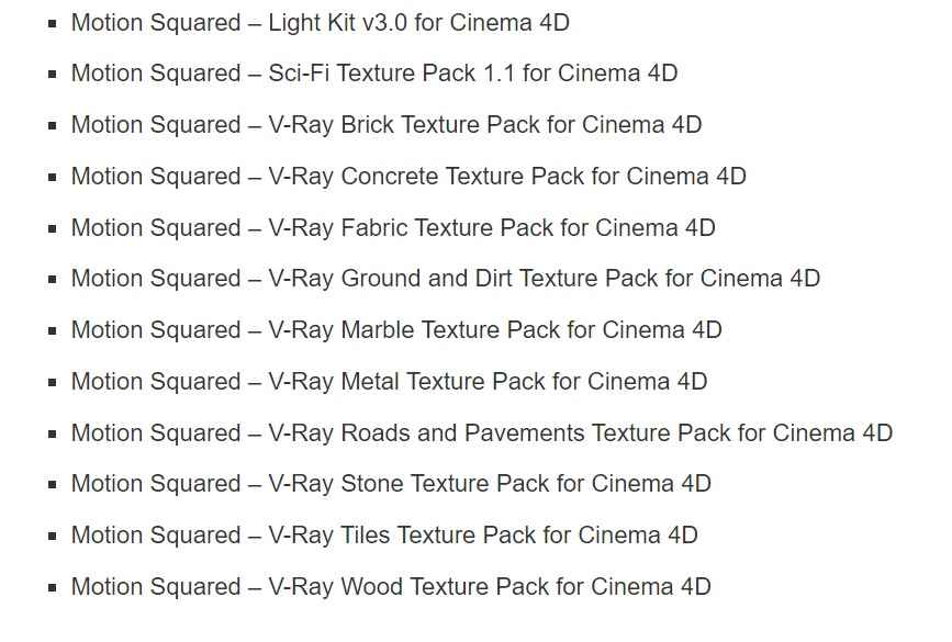 Paquetes de texturas Motion Squared V-ray para descarga COMPLETA de Cinema 4D –