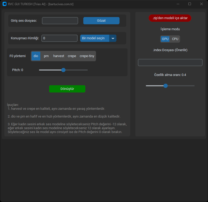 Descargue Rvc Gui – Turco completo – Cambie su voz de inteligencia artificial