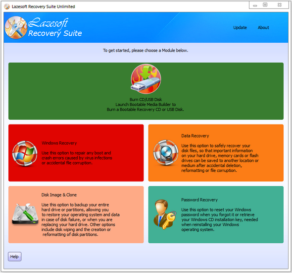 LazeSoft Recovery Suite Edición ilimitadaEs un excelente software de recuperación de datos y sistemas, crea CD y discos de arranque USB y