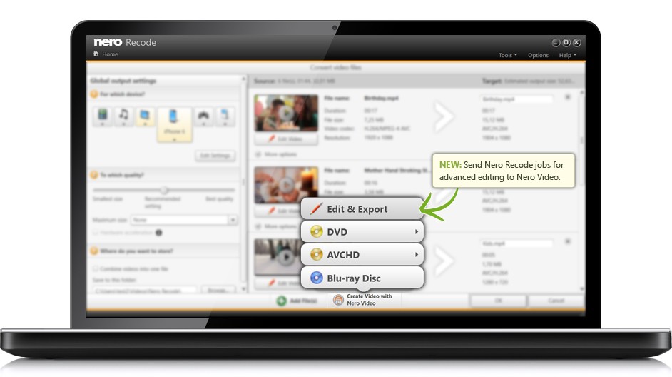Puedes guardar, recortar y más. Nero Recode 2017 no requiere instalación.