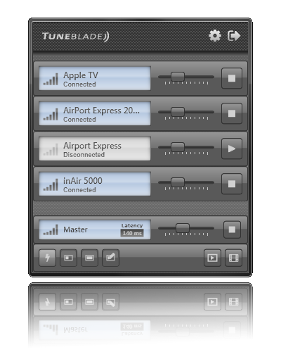 TuneBladeApple TV permite la transmisión de audio en todo el sistema a través de AirPlay y aplicaciones de receptor de audio AirPlay como ShairPort y XBMC