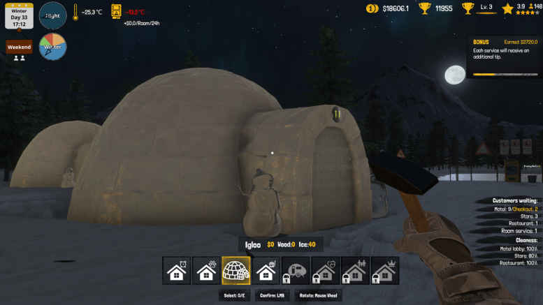 Arctic Motel Simulator, en este juego lanzado en 2025 Establecerás y gestionarás un hotel en el Polo Norte. Aunque las condiciones climáticas sean frías, vivirás una experiencia única con vistas impresionantes. Gestione las condiciones climáticas durante las cuatro estaciones. Reciba a sus valiosos invitados de la mejor manera posible y bríndeles el mayor confort. Su hotel comenzará siendo pequeño y gradualmente se desarrollará y crecerá con las inversiones que realice. Cumple las expectativas de los huéspedes de la mejor manera posible y explora el mapa para establecer nuevas construcciones y hacer más grande tu negocio.
