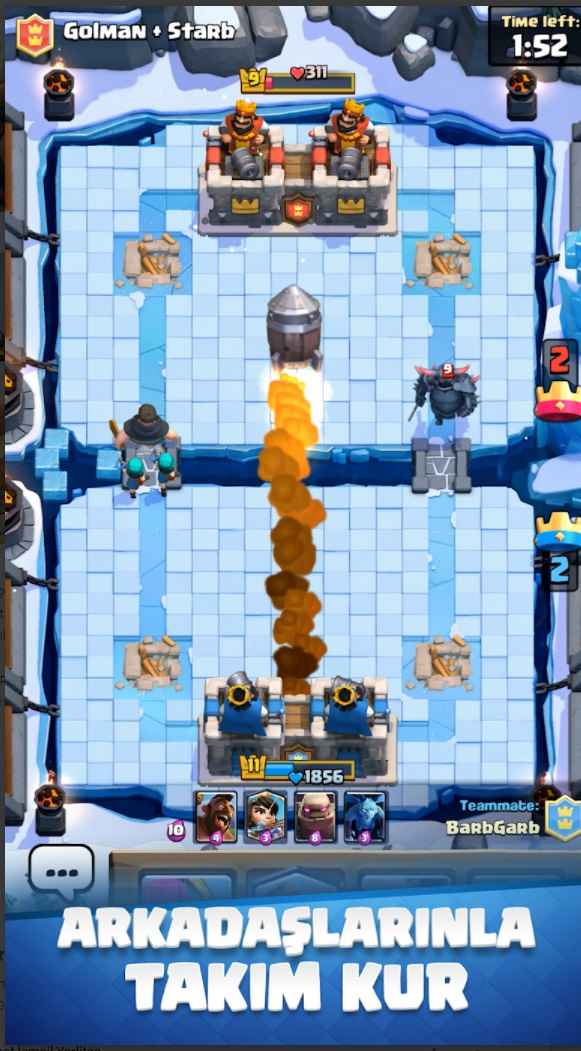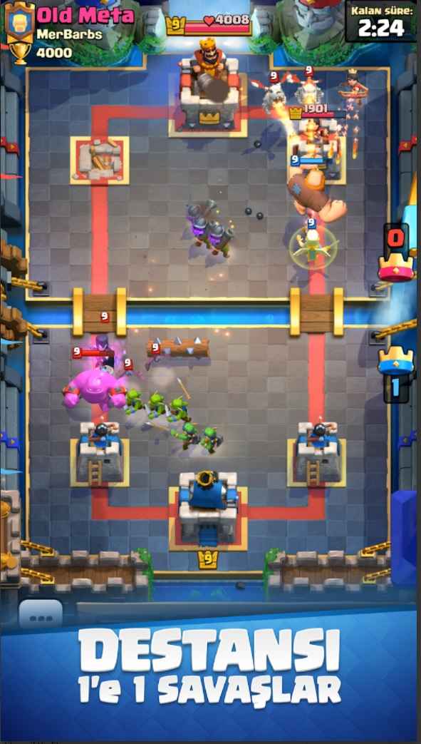 Descargar Clash Royale Trucos Apk,Androide Los creadores de nuestro juego Clash of Clans han creado un nuevo juego. Nuestro juego es un poco diferente. Aquí tendremos un rey, no un pueblo. Nos enfrentaremos a algunos de nuestros rivales e intentaremos derrotar a su rey. Dirigiremos a nuestros guerreros con cartas. Cuando fortalezcamos nuestras cartas, tendremos guerreros más fuertes y será más fácil derrotar a nuestros oponentes. Truco PvP en línea con mapa renovado y funciones adicionales. actualizar