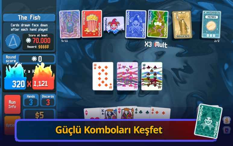 Balatro Apk también se lanza para PC. Es un juego para Android tipo roguelike y de cartas. En el juego, competirás con tus oponentes en las mesas de póquer y los vencerás haciendo movimientos lógicos. Mantenga su equilibrio de suerte y estrategia normal. Tu mano puede ser buena o mala, pero continúa de la manera que tenga sentido para ti. Realiza un seguimiento de tus cartas siendo completamente táctico y estratégico. Controla con dos dedos, haz tu movimiento y gana.