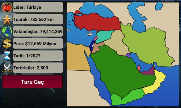 Imperio de Medio Oriente 2027 APK, En el juego, tendrás autoridad ilimitada en tu país durante el levantamiento contra el gobierno en 2027 y desarrollarás tu país y lo convertirás en el emperador de Medio Oriente. En el juego Middle East Empire 2027, intentarás desarrollar tu país en los campos militar y económico e intentarás convertirte en un líder superior a todos los demás. Intentarás tomar las decisiones correctas con tus propias estrategias y demostrar que eres el mejor país entre 14 países.